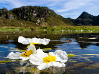 靖西庞凌河国家重点保护稀珍濒危水生药用植物海菜花绽放。