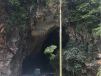 据说“归顺州志”记载:“朝日东升,正照洞中”因此叫做“照阳关”。照阳关的两个山洞,就是人们所说的唯一的“华山一天路”,如今山脚下通车了,但还是显示出《蜀道难》的“一夫当关,万夫莫开”的气势。这里地处南疆边陲,一跨过关,便是那坡县地界,也就是说照阳关就是那坡、靖西两县的“分水岭”。再说,以前靖西通往“云南”的道路也是有且只有“照阳关”一条,关山不是很高,可是山势陡峭崔嵬,险峻异常,连山羊也难于攀援过去。所以,这里自古就是兵家必争之地。陆老爷告诉我,上洞西壁有两处“照阳关”三字的摩岩石刻,巨石上有多处题诗,最有名的是归顺州吏目蔡鸿遵的诗句:“紫气自东升,朝旭升山巅。边关严锁钥,划界真天然。润石常如此,岁岁乐有年。”这座山现在虽已是初冬,但还是树林青翠,荆刺丛生,很难找到往照阳关上面溶洞的去路,我只能望山兴叹,无缘一睹那些石岩美字,这也许是我终生的憾事!