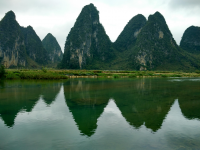 百万山下,禄峒河边,靖西市新靖镇足朋屯风光。