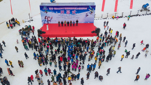 这是一年一度的仙女山冰雪运动会开幕式,近百位国内外优秀运动员为现场游客带来了难得一见的空中技巧等高难度滑雪表演。