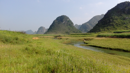 据百度百科记载,同源村百布屯南的百布泉水,夏秋季泉水涌出地面成河,流经塘麻,龙岗,大道,凌爱等村,长约8公里,注入溶洞与百布-大龙潭地下河汇合,伏流约10余公里从大龙潭涌出,潭水南流成龙潭河。我可能是网上首次介绍这一小河的人哦,不说了,上图片啦!
